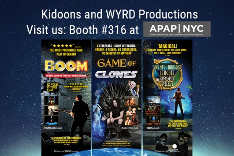 Kidoons and WYRD Productions will be at APAP January 7-9 in New York with 3 amazing shows for any Performing Arts Centre: an award-winning solo show, a sensational family adventure, and a hilarious new parody! Whether for one night or an extended run, we'll help make your season... and all of our shows include extensive outreach, education and media on the Kidoons Network. Chat with us at Booth #316 or email to make an appointment.